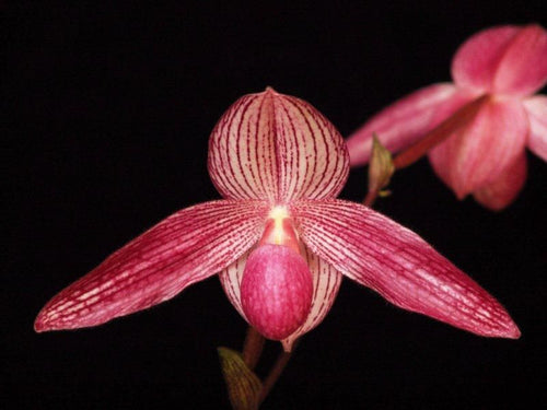 Paphiopedilum DELROSI (rothschildianum 'Tokyo Titan' x delenatii fma vinicolor)